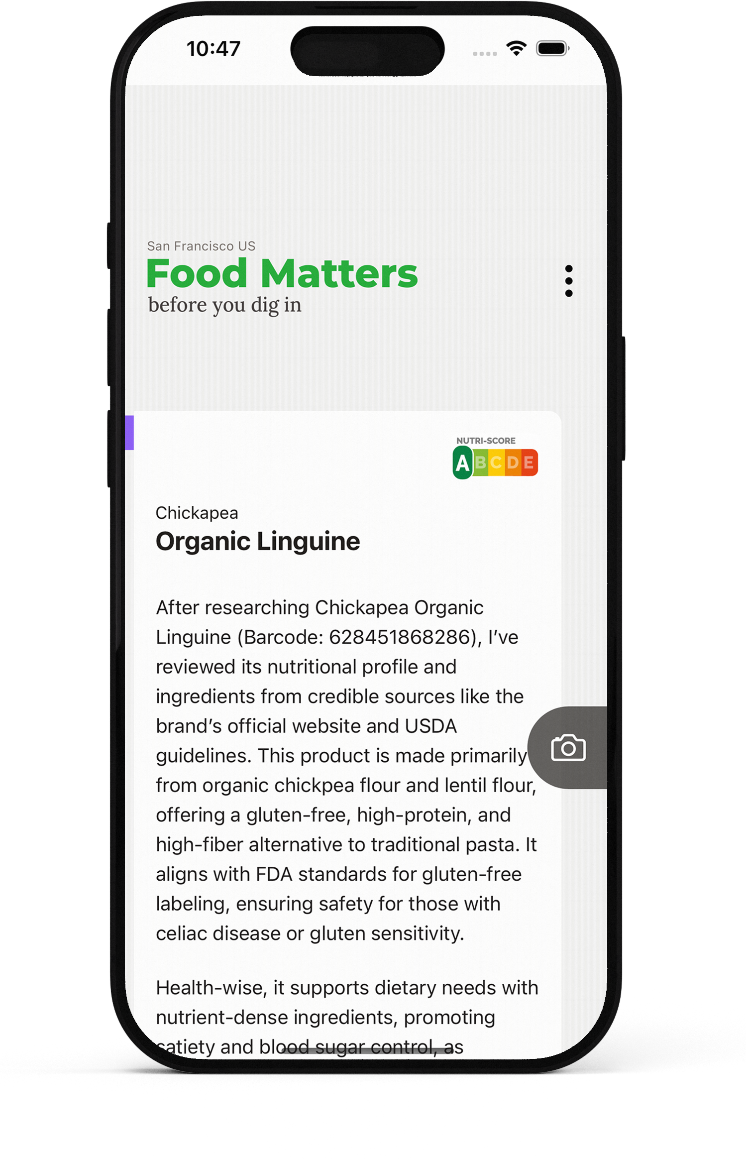 With Food Matters, complex ingredient lists are no longer a mystery: everything is presented in clear, everyday language tailored to you. Whether you’re shopping for your family or managing dietary needs, this app empowers you with the knowledge to choose confidently.